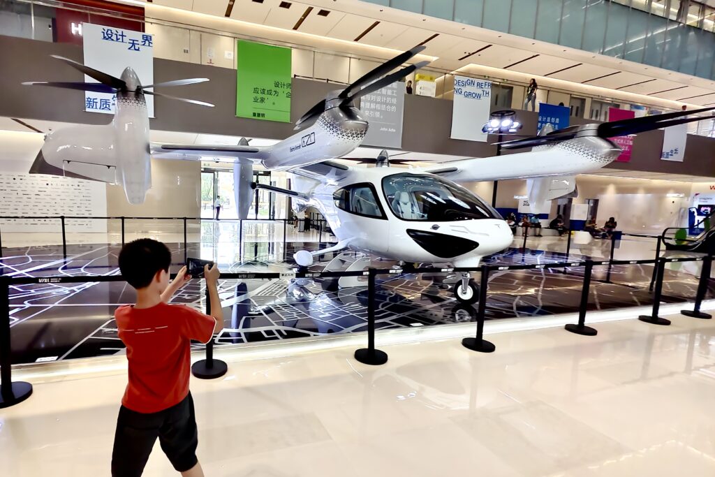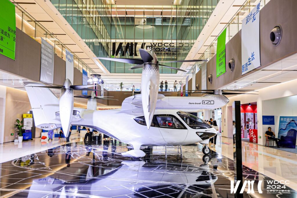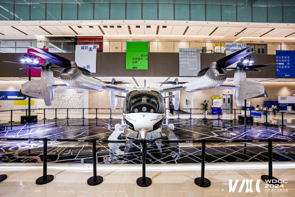 9月27日,2024世界设计之都大会在上海世博城市最佳实践区开幕,工口 E20 eVTOL作为镇馆之宝亮相黄浦滨江鼎博大厦,展现低空出行的未来生活。