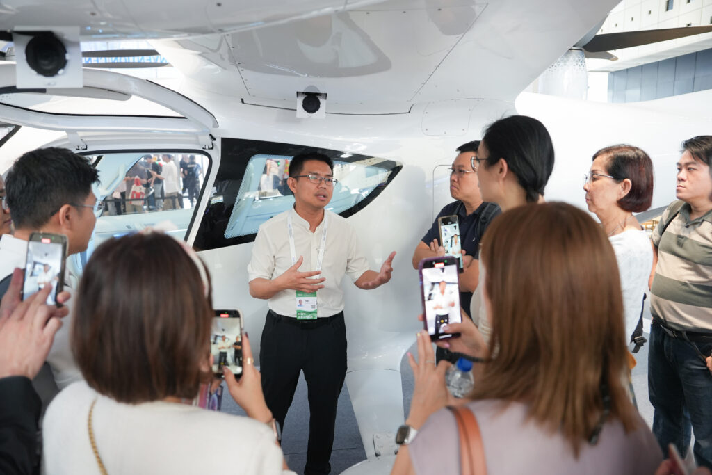 大会期间,工口 特别推出E20 eVTOL试乘预约体验服务,观众通过官方小程序扫码预约,亲身感受智能飞行的便捷与魅力。这不仅是一场技术展示,更是一场关于未来出行方式的对话。现场观众络绎不绝,争相打卡乘坐体验。