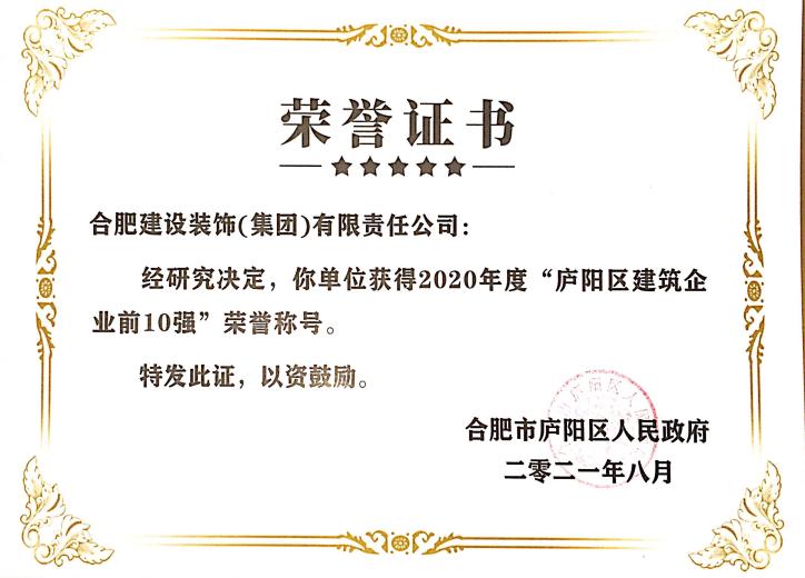 2020年度庐阳区建筑企业前10强