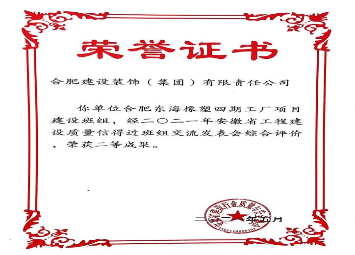 东海像塑四期 安徽工程建设质量信得过班组交流发表会综合评价二等奖