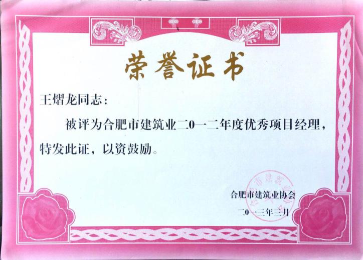 2012年度优秀项目经理王熠龙