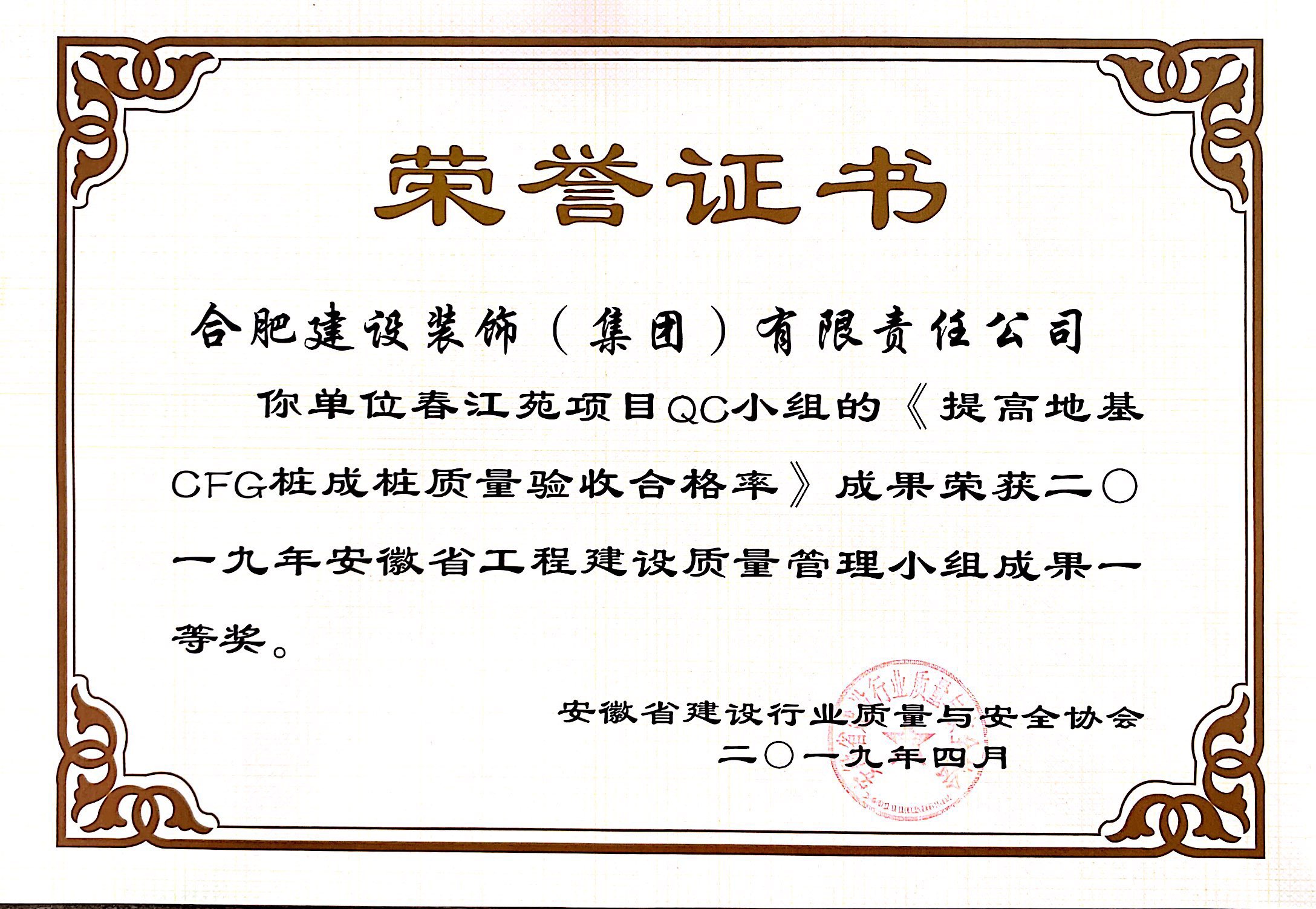 >2019年安徽省工程建设质量管理小组成果一等奖