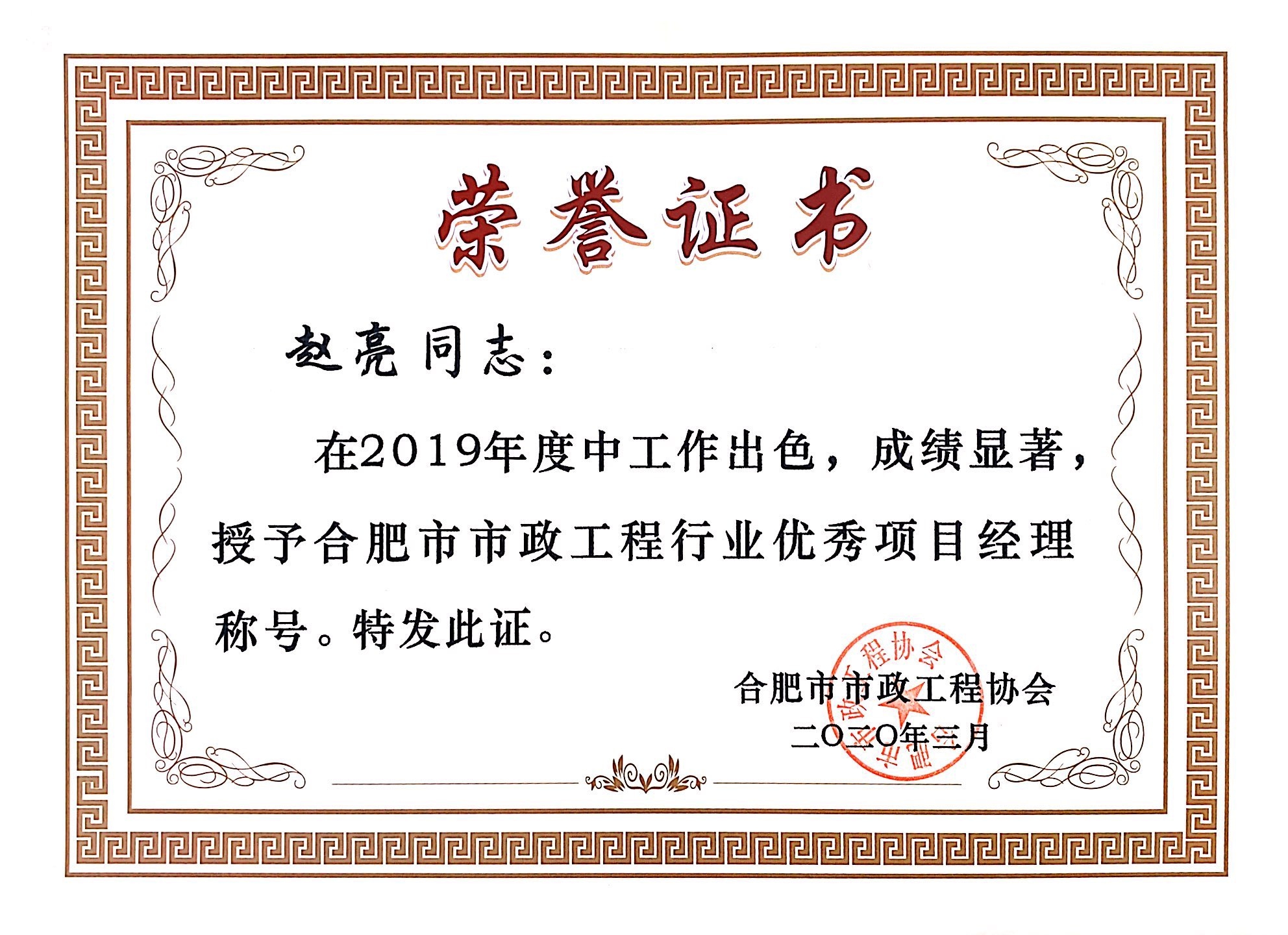 >赵亮2019市政优秀项目经理