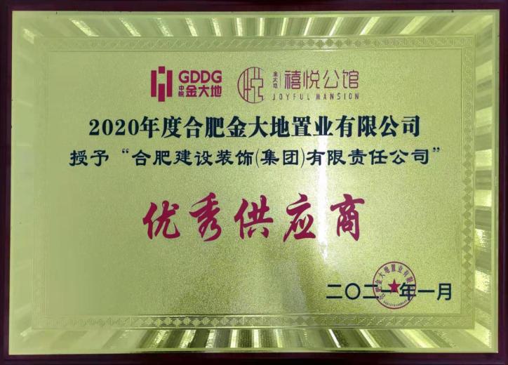 >合肥金大地置业有限公司2020年度“优秀供应商”奖牌