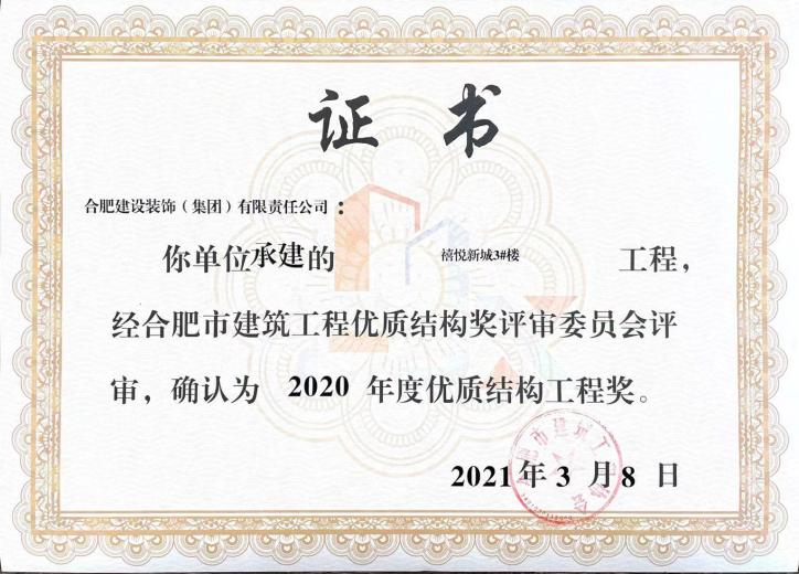 >禧悦新城3#楼——2020年度合肥市建筑工程优质结构奖