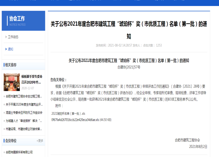 >2021年度合肥市建筑工程“琥珀杯”奖(市优质工程)