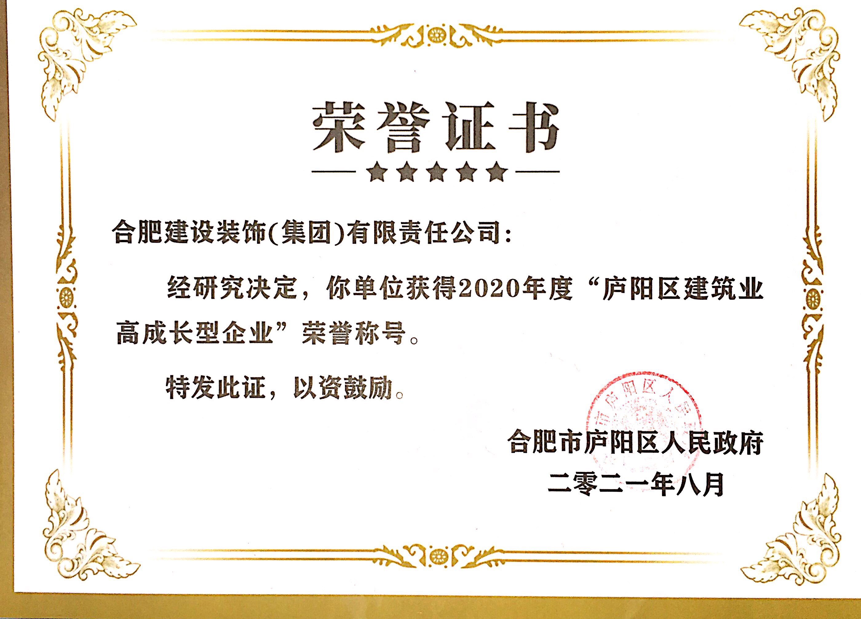 >2020年度庐阳区建筑业高成长型企业