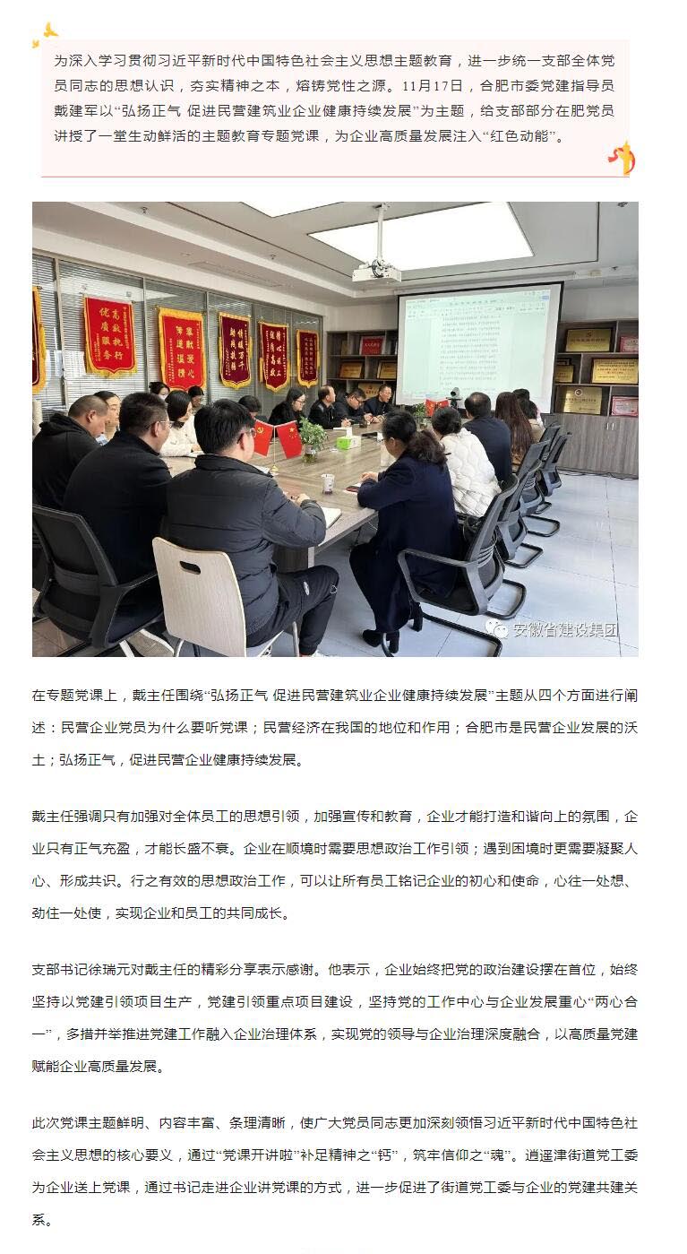 党建活动 | 合肥市委党建指导员深入企业“党课开讲啦”