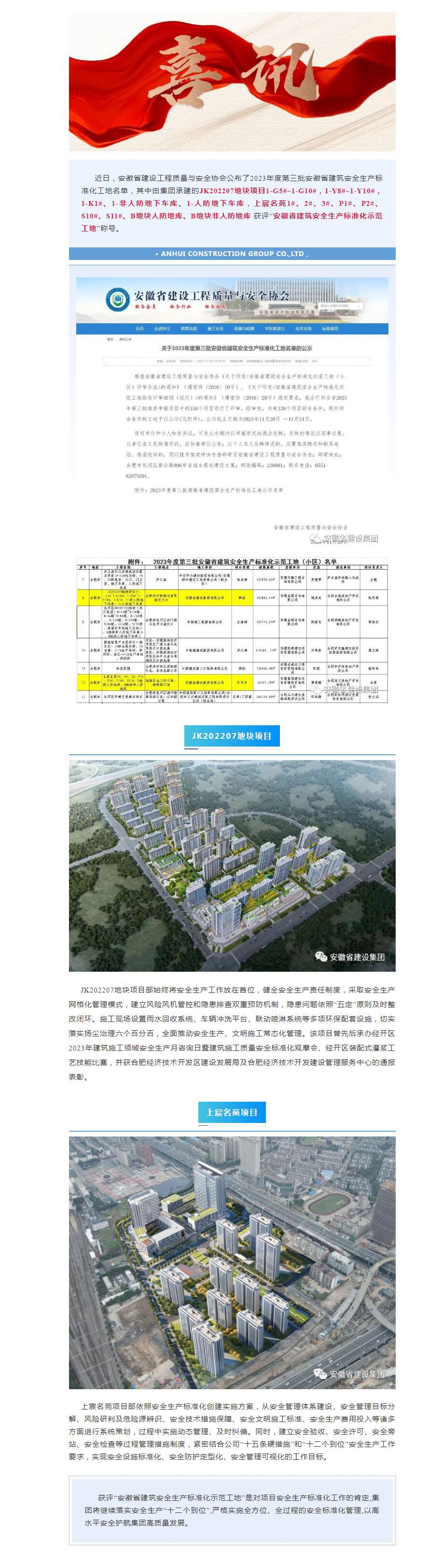 集团再添两个“安徽省建筑安全生产标准化示范工地”