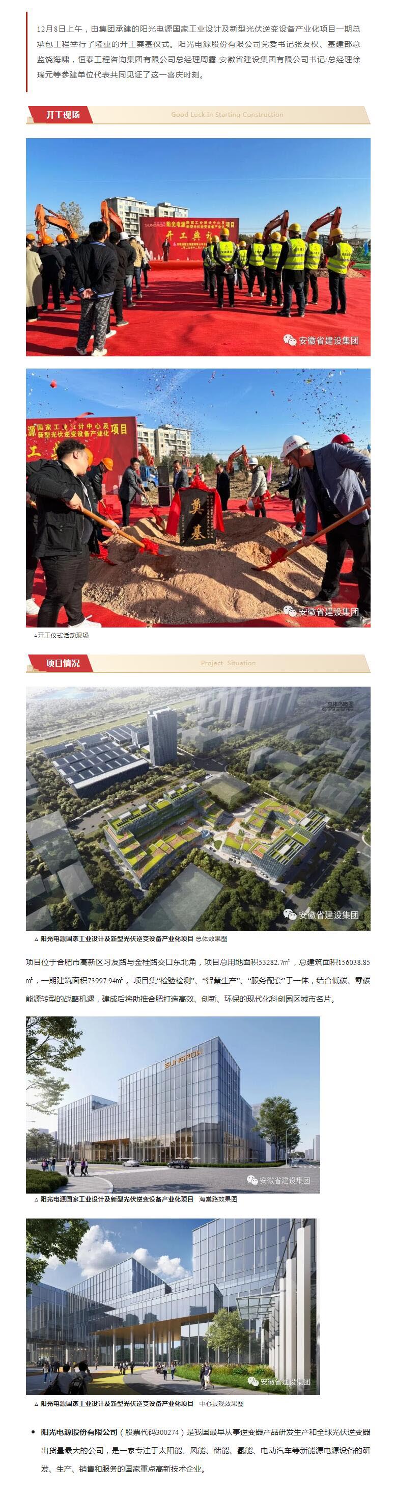 >阳光电源国家工业设计及新型光伏逆变设备产业化项目顺利开工