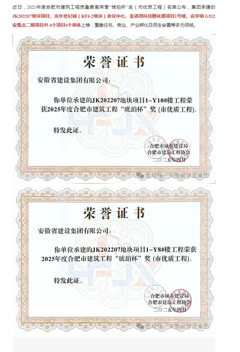 >喜报丨集团再添六项“琥珀杯”!